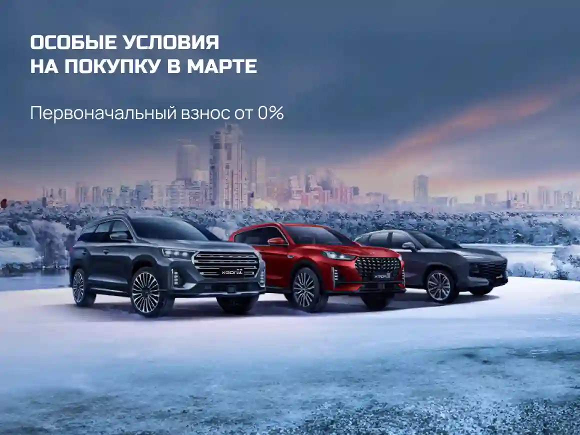 «Особые условия на покупку в марте» — это привлекательные условия кредитования на автомобили Jetour X90 Plus, Jetour X70 Plus, Jetour Dashing от 4 банков: Альфа-Банк, СОВКОМБАНК, ТБанк, ВТБ. Также клиентам доступна выгода в 300 тысяч рублей на все комплектации модели Jetour Dashing. Акция действует с 1 по 31 марта 2024 года.